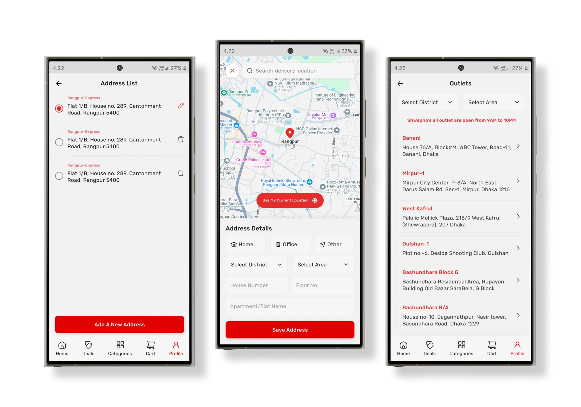 As a regular user of the Shwapno app, I noticed several areas where the design caused frustration and inefficiency. The app’s lack of consistency and clarity made it difficult to find products, complete orders, and manage my account, leading to a less-than-ideal shopping experience. This project aims to address these pain points and create a more user-friendly and enjoyable app.