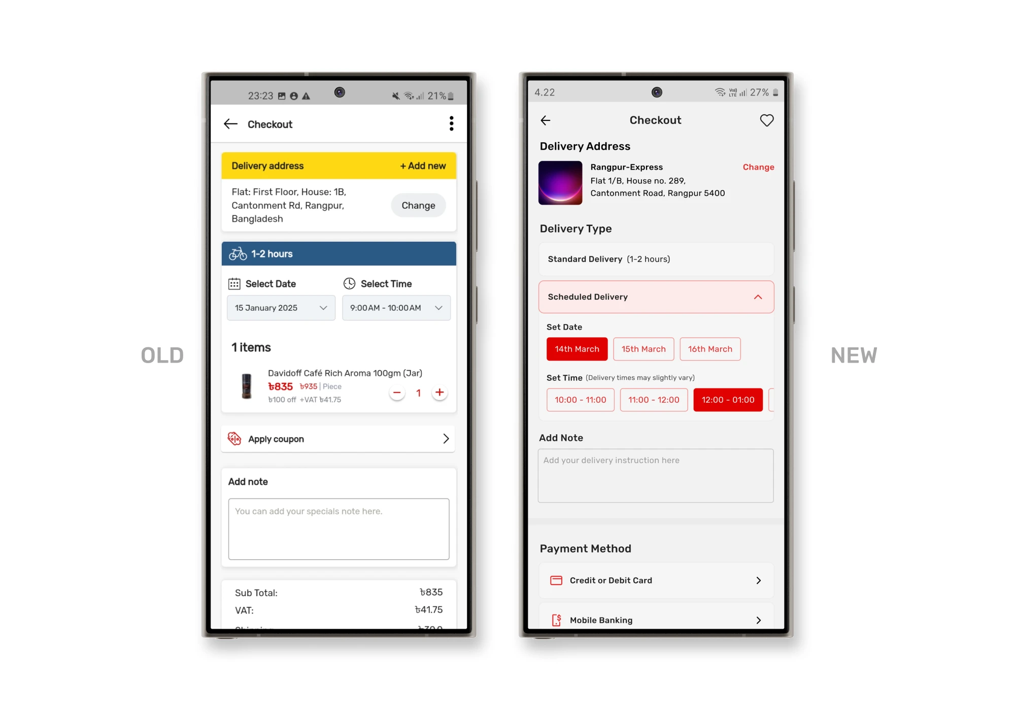 Introduced a new feature called delivery type, allowing users to choose between standard delivery and scheduled delivery, reducing the risk of mistakes.