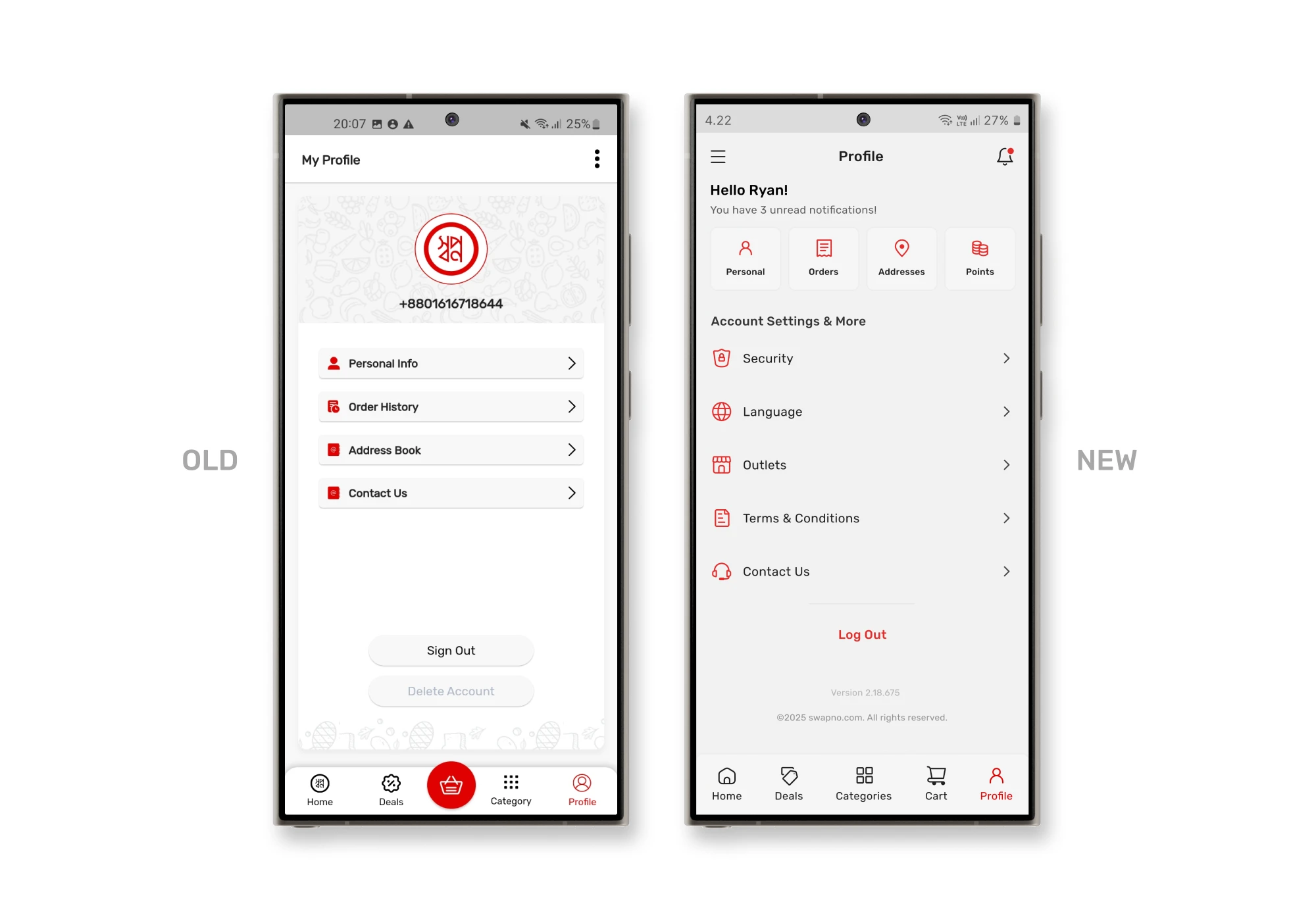 During my research and analysis of the Shwapno app, I identified several areas that could be improved to enhance the overall user experience. My approach was based on core UI/UX design principles, user flow analysis, and a review of common pain points experienced during regular use.